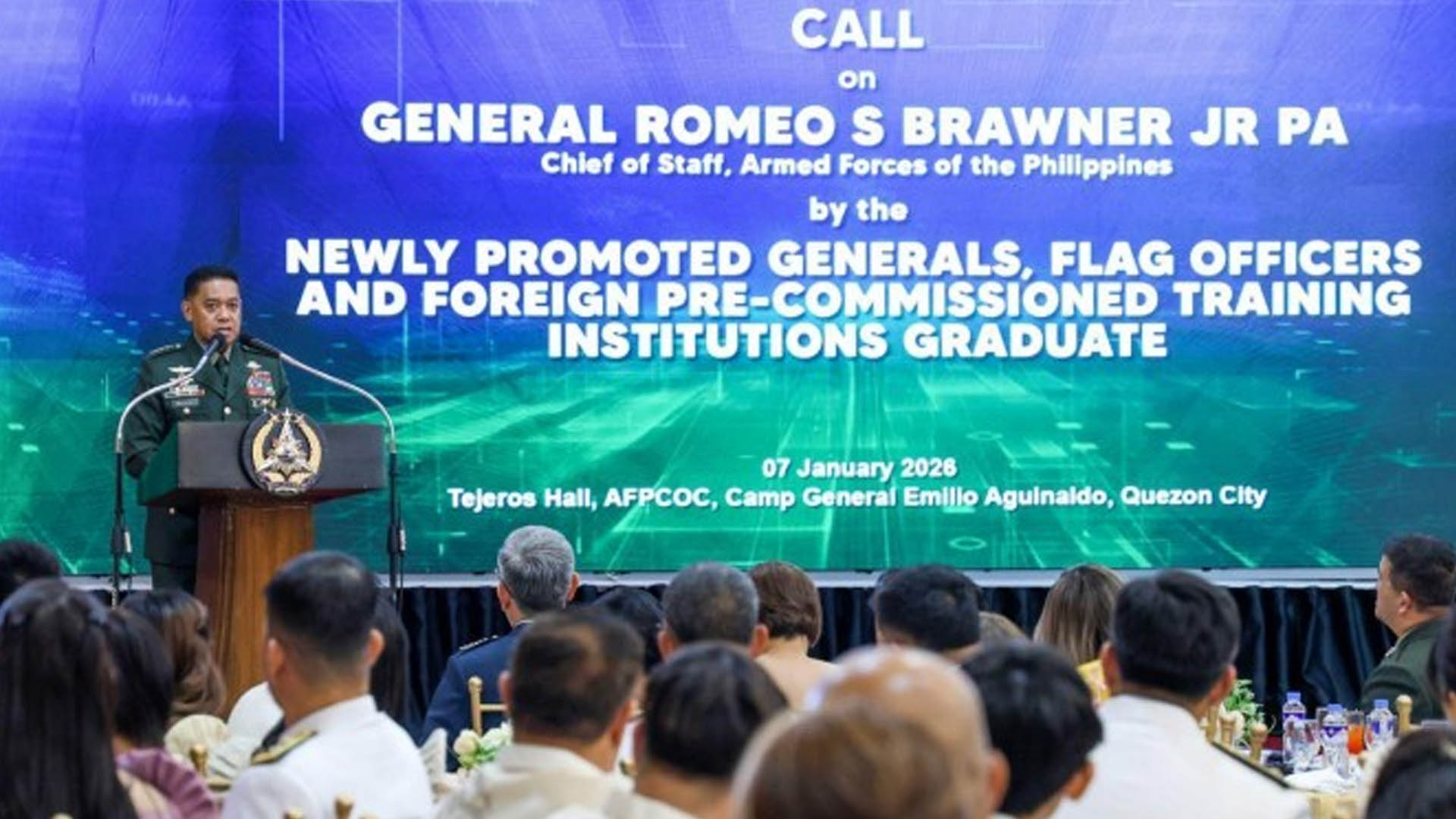 He made this call to the 37 newly promoted generals and flag officers of the AFP along with a newly-graduated officer from a Foreign Pre-Commission Training Institution who earlier took their oath before President Ferdinand R. Marcos Jr. in a ceremony at Malacañang Palace last Jan. 7.