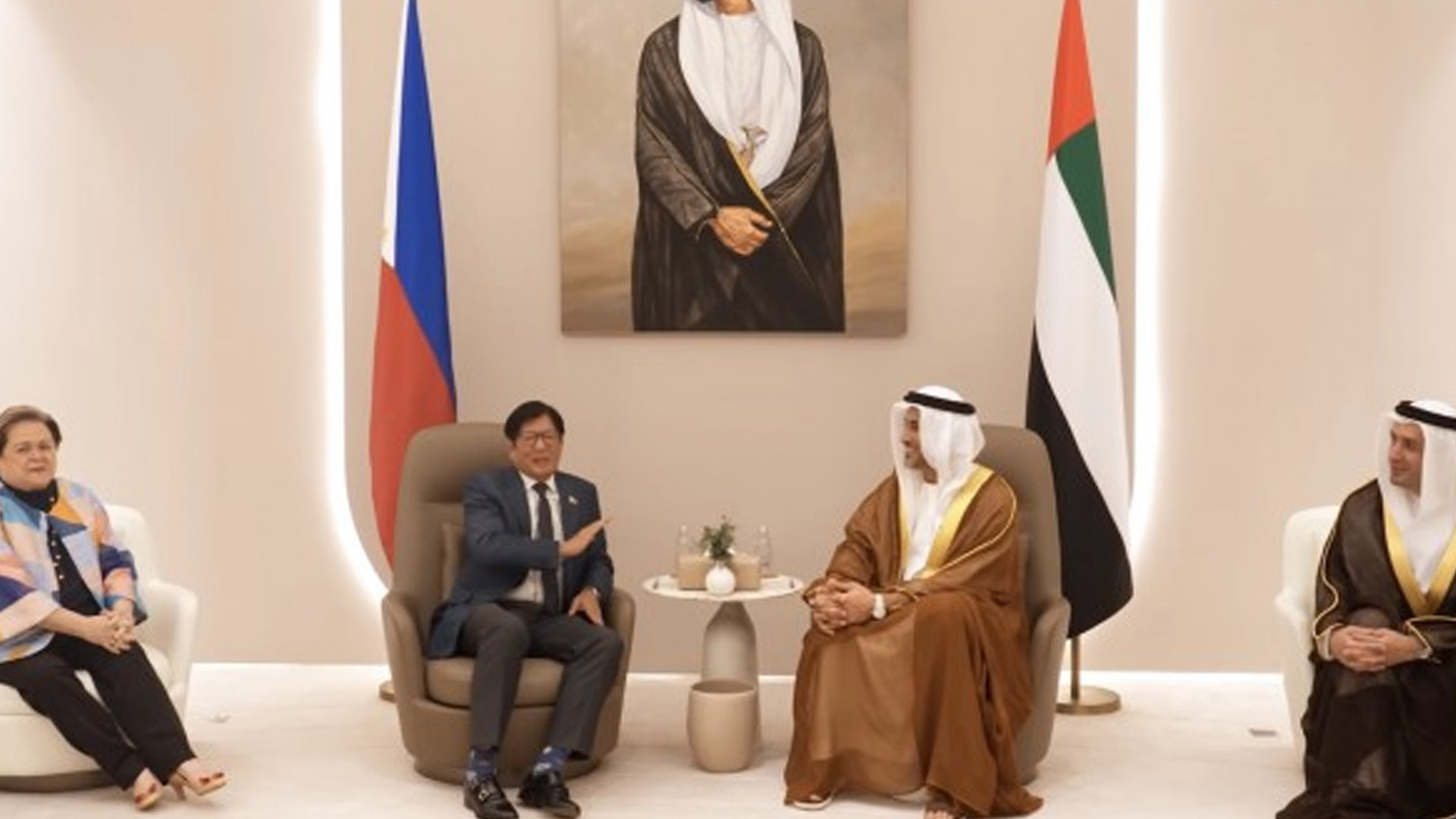 Marcos was received by UAE Minister of State Saeed Al Hajeri, along with Foreign Affairs Secretary Ma. Theresa Lazaro and Philippine Ambassador to the UAE Alfonso Ver.